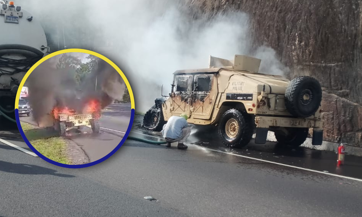 Se incendia otro vehículo militar, esta vez, una Humvee perteneciente a los marines de Palmerola, en la carretera CA-5 después del peaje que, de Tegucigalpa, conduce hacia Comayagua.
