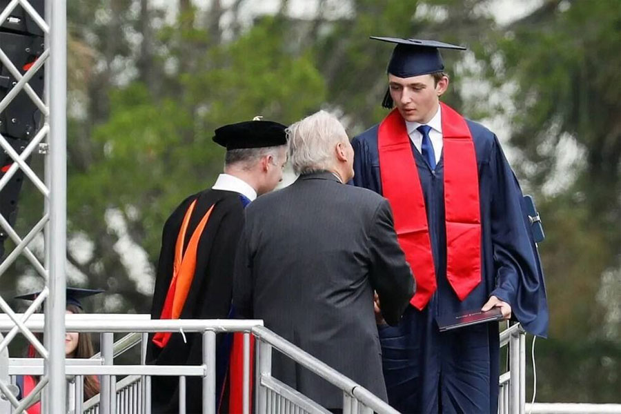 En las imágenes de video recogidas por The Palm Beach Post se ve a un Barron, vestido de blusón negro y corbata, con birrete y toga de graduación, dirigirse al escenario donde le hacen entrega de su diploma y luego regresar a su asiento entre los demás compañeros.