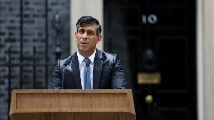 Sunak, bajo la incesante lluvia londinense, les explicó a los medios en aproximadamente ocho minutos que había informado previamente al rey Carlos III de su intención de llamar a las urnas el 4 de julio, aunque podía hacerlo en cualquier momento antes del 28 de enero, el fin de la legislatura.