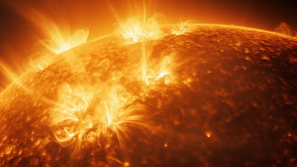 Las tormentas solares comienzan en las manchas solares, áreas más frías y oscuras en la superficie del Sol, donde los campos magnéticos son particularmente fuertes y retorcidos. Cuando estos campos magnéticos se reorganizan o se cruzan, liberan energía en forma de erupciones solares.