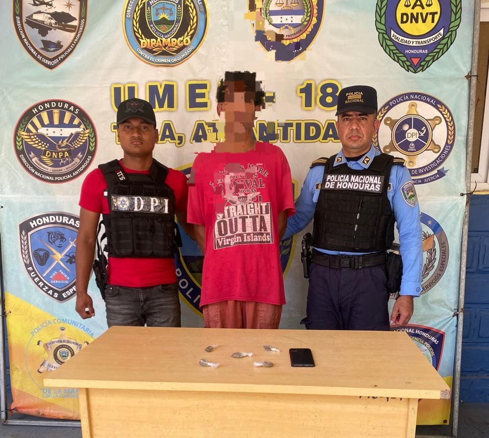 El detenido de 20 años, es originario del municipio de Tela y residente en la colonia Municipal, aldea Mezapa, Atlántida.