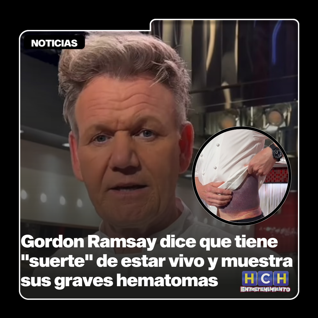 En un momento del video, la estrella de “Hell’s Kitchen” se levanta la bata blanca de chef para mostrar un enorme hematoma morado en el torso.