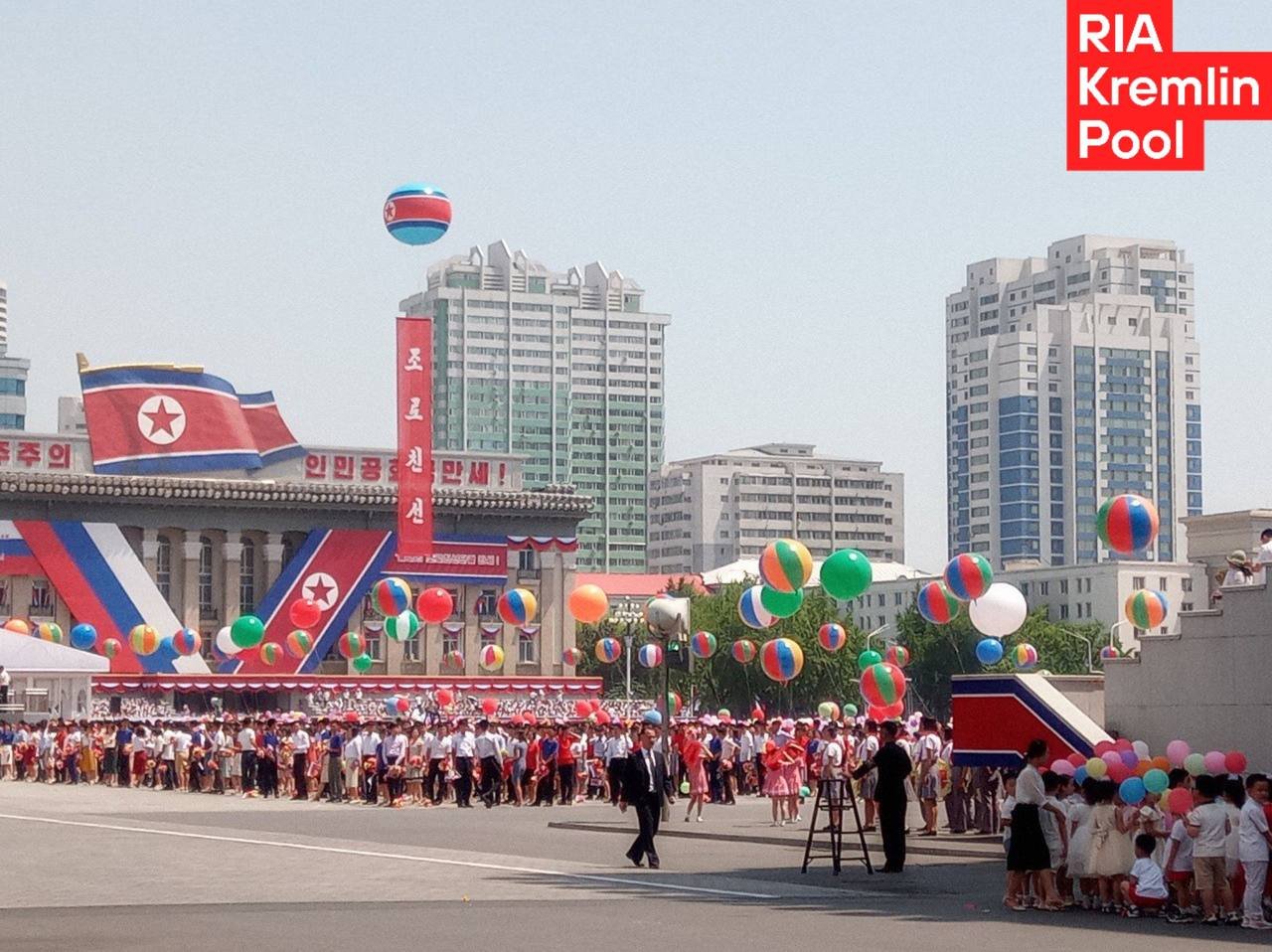El presidente de Rusia, Vladímir Putin, se hizo presente este miércoles en la plaza la plaza Kim Il-sung, en Pionyang, donde se celebra la ceremonia oficial de su encuentro con el líder de Corea del Norte, Kim Jong-un, en el marco de su visita oficial al país asiático.