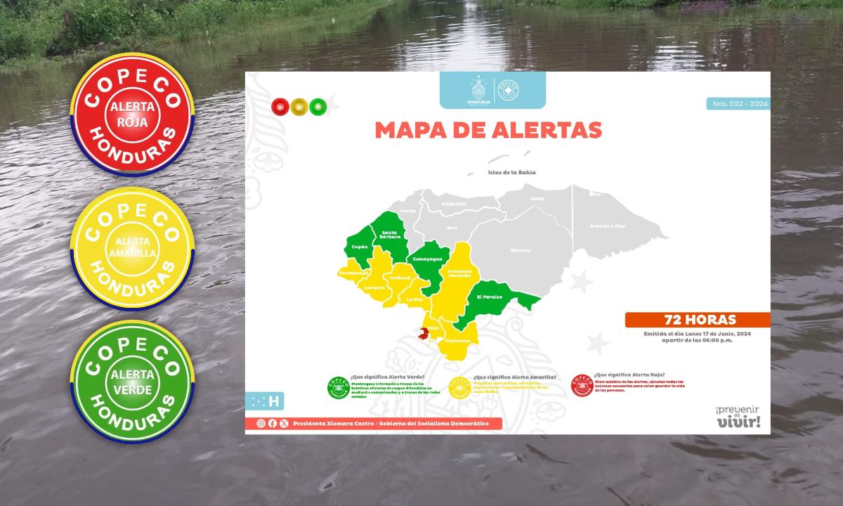 Además, se mantienen en alerta amarilla los departamentos de Ocotepeque, Lempira, Intibucá, La Paz, Francisco Morazán, el resto de Valle y Choluteca.