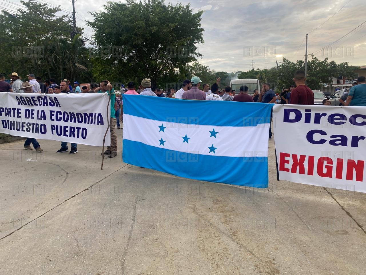 “Queremos trabajar”, dicen protestantes en la aldea El Chile entre Puerto Cortés y San Pedro Sula, quienes exigen la reapertura de cantera cerrada por el Instituto Hondureño de Geología y Minas (INHGEOMIN).