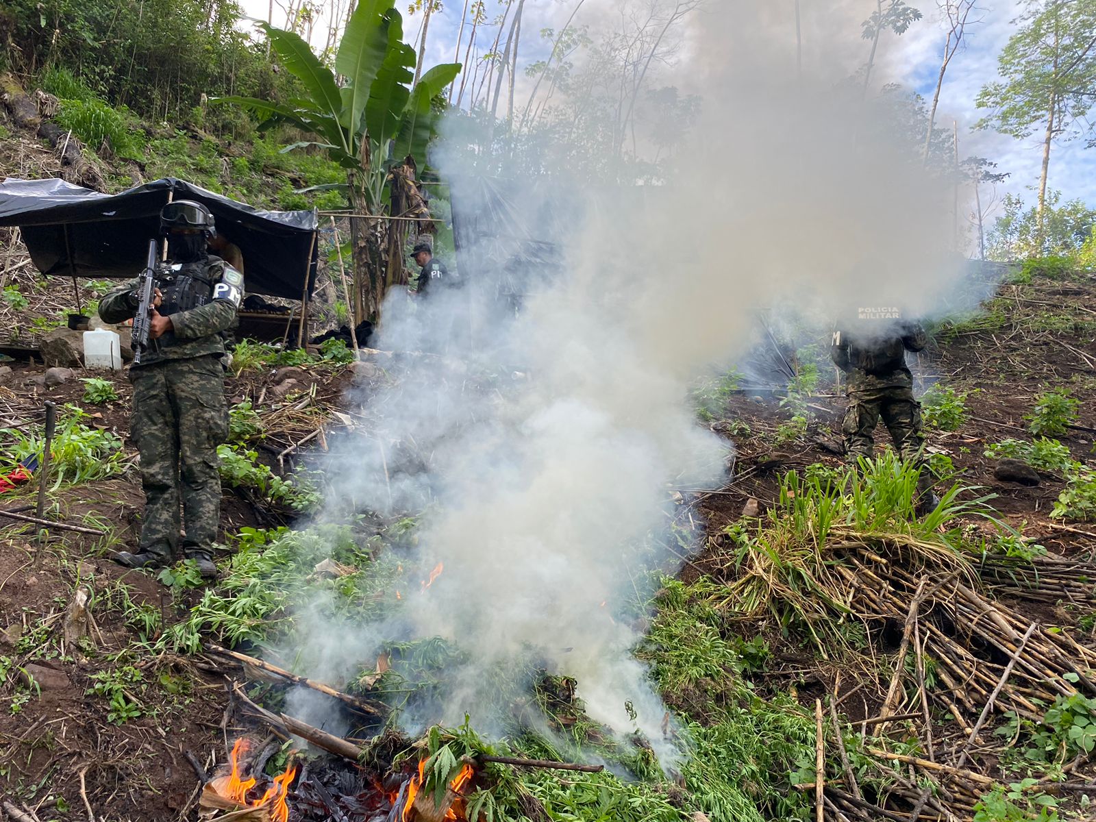 En la aldea Tapiquil, sector montañoso de Sabá, Colón, fueron incineradas 25,000 plantas de supuesta marihuana ubicadas en una extensión de aproximadamente cinco manzanas de tierra, esta operación fue ejecutada por las Fuerzas Armadas a través de la Policía Militar del Orden Público (PMOP).