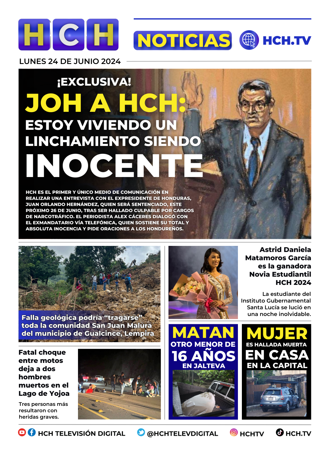 © 2025 - HCH Televisión Digital - Noticias de Honduras y el Mundo. Anillo Periférico, Complejo Empresarial Tegucigalpa, Honduras, C.A. Tel: (504) 2235-3245 / 2235-3246 / 2235-4875 / 2235-4876 LLÁMENOS GRATIS DESDE EE.UU: 3052801682 y 3052801735 © Copyright 2025 - HCH Televisión Digital. Todos nuestros contenidos están protegidos con derechos de autor.