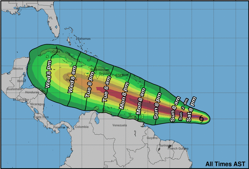 «Es probable que se requieran alertas de huracán y tormenta tropical para porciones de las Antillas Menores el sábado temprano», dijo el centro.