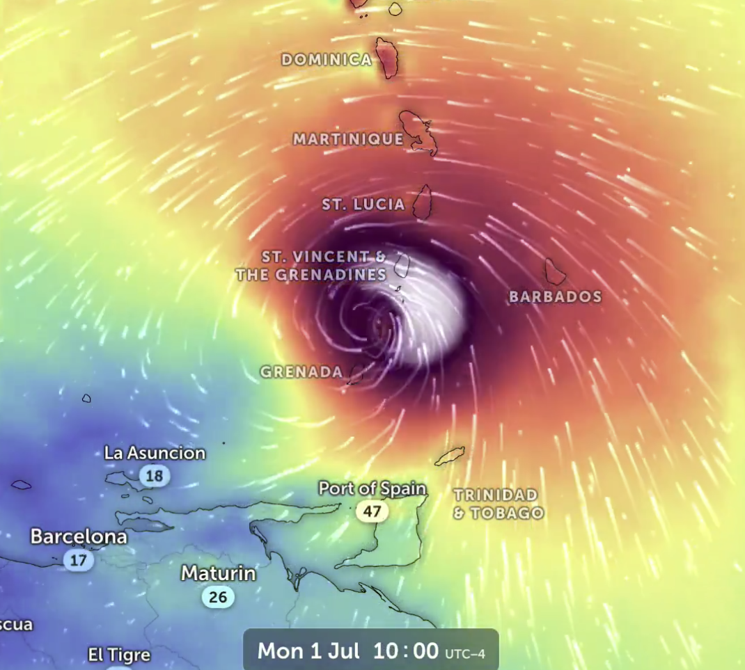 El NHC urgió a los residentes en las Islas Granadinas y la isla Cariobacú a no abandonar su refugio ya que los vientos de Beryl, el primer huracán de la temporada atlántica, aumentarán rápidamente dentro de la pared del ojo del ciclón.