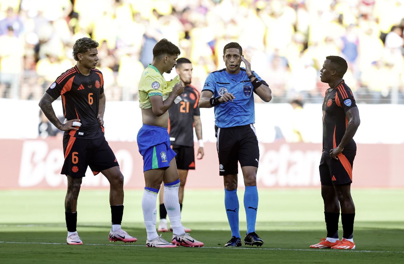 Brasil empató 1-1 ante Colombia en el compromiso más atractivo de la tercera jornada del Grupo D de la Copa América. El cruce disputado en el Levi’s Stadium de Santa Clara tuvo el condimento de que la Verdeamarela necesitaba sumar, al menos, un punto para asegurar la clasificación a los cuartos de final, instancia en la que no tendrá a Vinicius, suspendido por llegar a su segunda tarjeta amarilla.