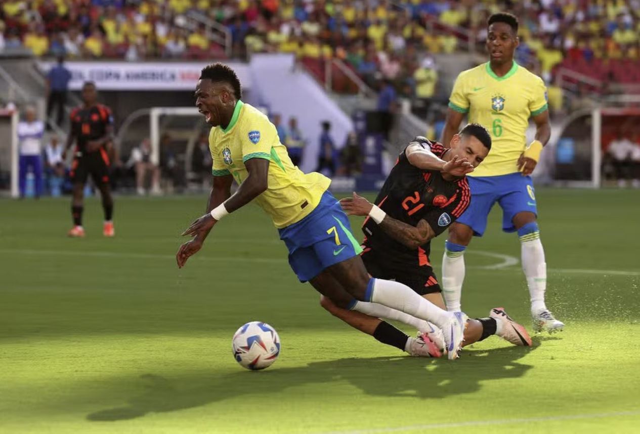 El empate entre Colombia y Brasil que bajó la persiana del Grupo D de la Copa América y dejó definidos los cuartos de final del certamen tuvo dos polémicas muy marcadas. La Verdeamarela reclamó una falta sobre Vinicius Jr. dentro del área y los cafeteros se quejaron por el offside sancionado en el gol que nivelaba las cosas cuando estaban abajo en el marcador.