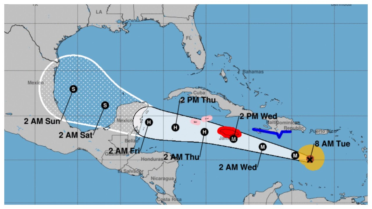 El ciclón, que amenaza el Caribe con marejadas y vientos destructivos, se encuentra a 200 kilómetros (125 millas) al sureste de Kingston (Jamaica) y a 690 kilómetros (430 millas) al este sureste de Gran Caimán.