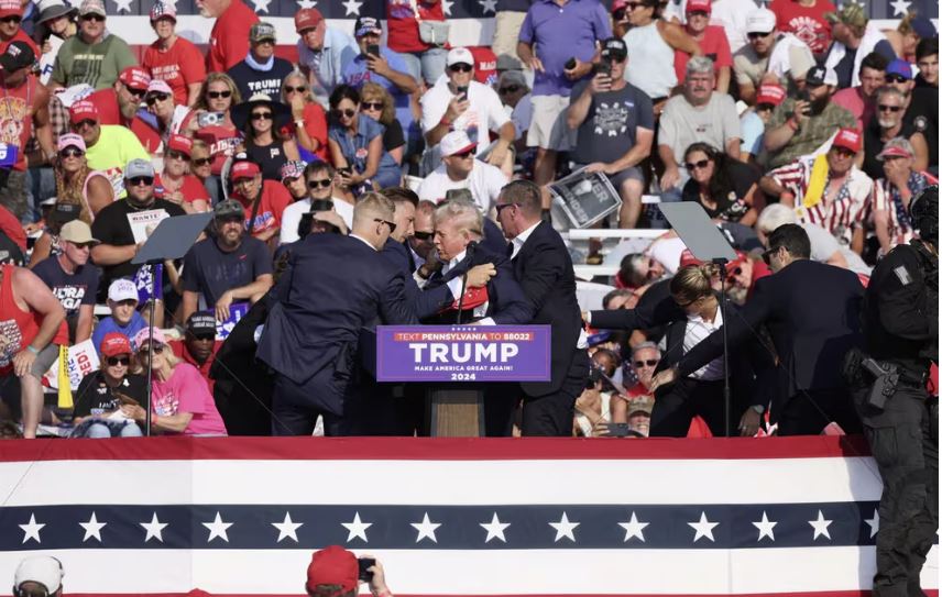 El ex presidente estadounidense fue visto con sangre en la oreja derecha mientras era rodeado por agentes de seguridad, que lo sacaron del escenario mientras levantaba el puño hacia la multitud.