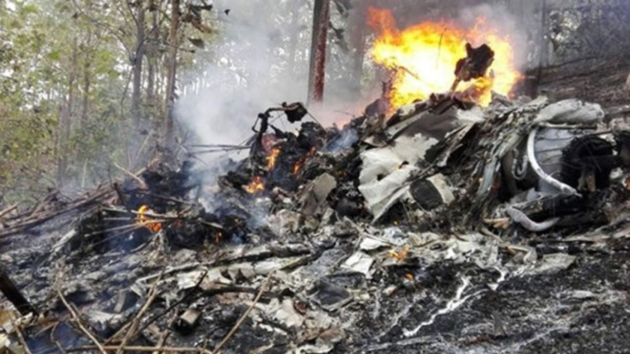 Imágenes divulgadas por los medios locales muestran los restos de la aeronave en llamas.