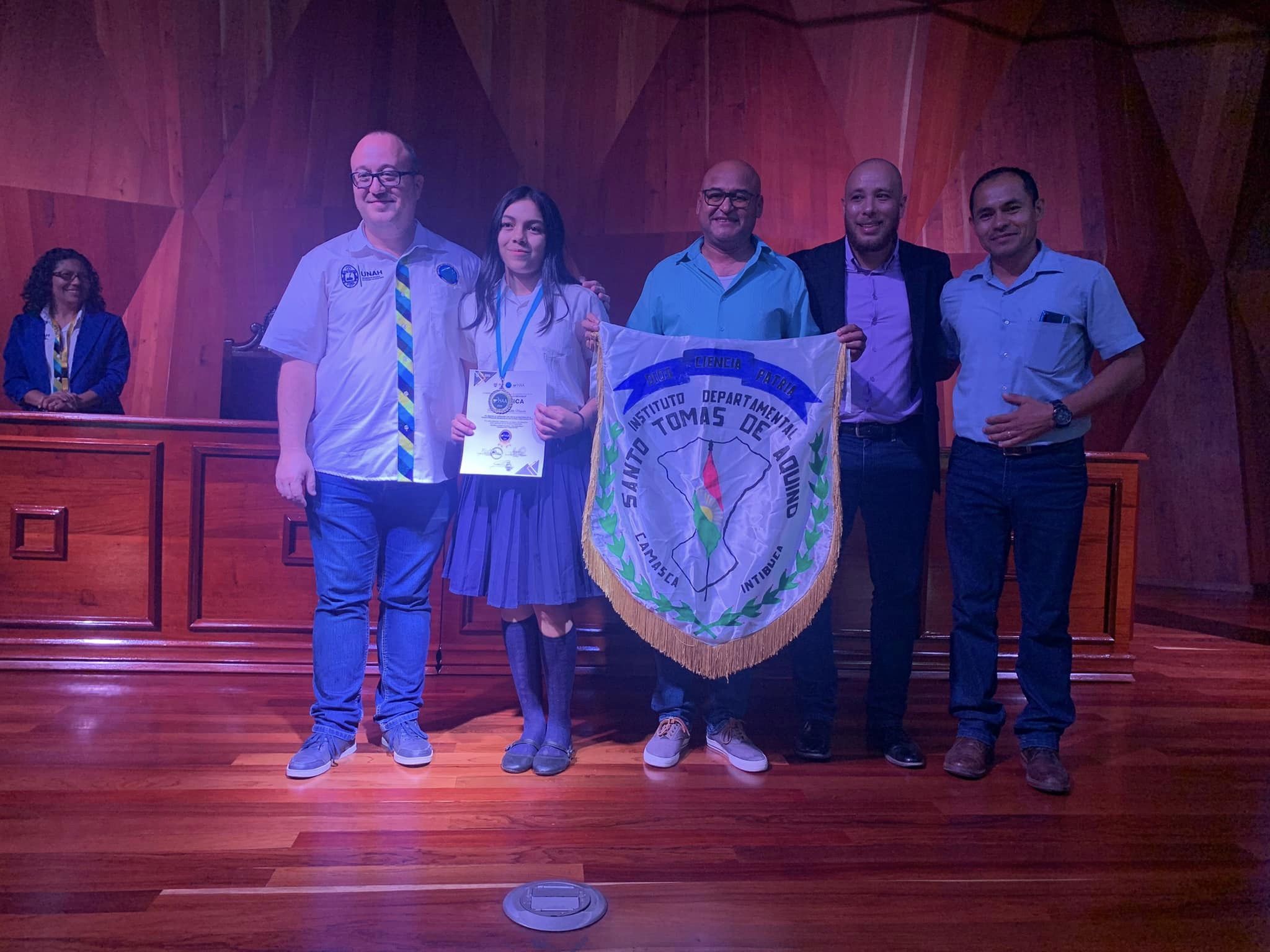 Rosa Valentina Castillo Manueles, quien es estudiante del Instituto Departamental Santo Tomás de Aquino (Camasca, Intibucá), fue galardonada con la presea de oro, por obtener el mayor puntaje en el Nivel Básico de la I Olimpiada Hondureña de Astronomía y Astronáutica efectuada por la Facultad de Ciencias Espaciales (FACES) de la Universidad Nacional Autónoma de Honduras (UNAH). La estudiante dijo sentirse emocionada y agradecida por la experiencia. “Me esforcé mucho y me siento agradecida por la oportunidad que la UNAH nos dio de poder participante en este importante evento.