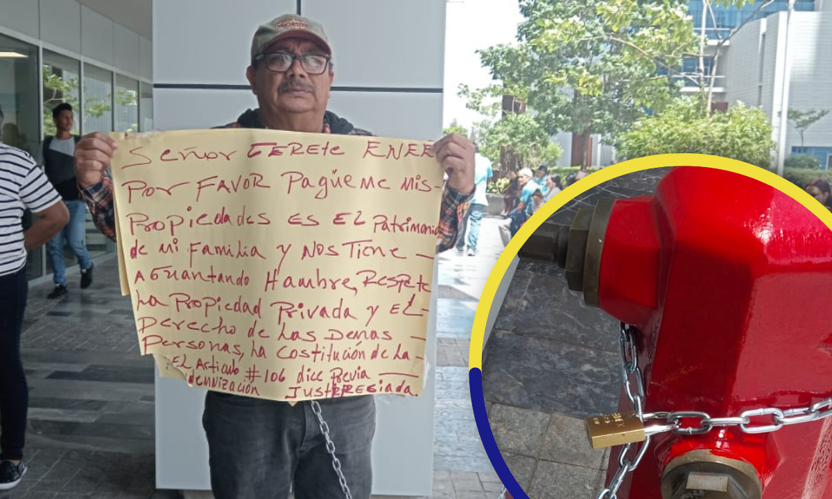 Un hondureño protestó encadenado en el Centro Cívico Gubernamental exigiendo indemnización de tierras.