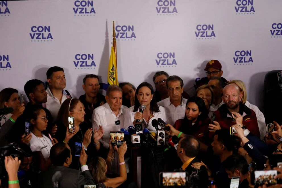 La líder de la oposición, María Corina Machado aseguró que Edmundo González Urrutia es el verdadero presidente electo de Venezuela y que la oposición obtuvo el 70% de los votos en los comicios celebrados este domingo.