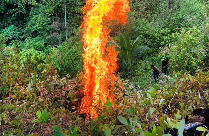 PMOP en cumplimiento a una orden emanada por un Juez con jurisdicción nacional, erradicó en la zona montañosa del municipio de La Masica, departamento de Atlántida una plantación de cuatro manzanas con más de 24 mil arbustos de hoja de coca.