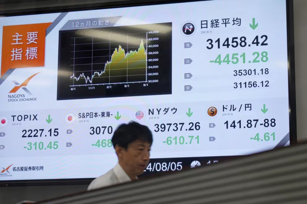 Por caso, el principal índice de la Bolsa de Tokio, el Nikkei, se desplomó un 12,40 % este lunes, la segunda mayor caída porcentual de su historia arrastrado por el fortalecimiento del yen, fomentado a su vez por la última subida de tipos del Banco de Japón (BoJ), y unido a los temores a una recesión en Estados Unidos.