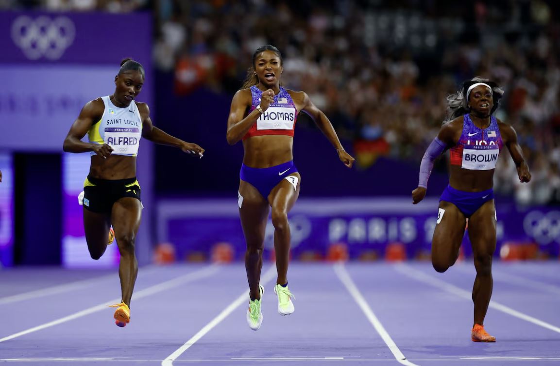 Estados Unidos recuperó en la curva de los 200m lo que el domingo había perdido Sha’Carri Richardson en la recta de los 100m, parte de la corona de la velocidad ante la misma Julien Alfred, la atleta de Santa Lucía que se proclamó campeona olímpica de los 100m. La heroína de la reconquista fue la magnífica Gabrielle Thomas, de 27 años, que pasó los primeros 100m en 11,10s, con una décima de ventaja sobre Alfred, menos habituada a correr de medio lado, que pasó cuarta. Aunque en la recta, Alfred, recuperó posiciones, Thomas, especialista de toda la vida de los 200m, reina de la resistencia a la velocidad, aumentó su ventaja para imponerse (21,83s frente a los 22,08s de la campeona de los 100m, que suma su segunda medalla).