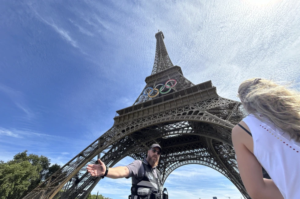 El hombre sin camisa fue visto escalando la torre de 330 metros (1.083 pies) de altura por la tarde. No está claro dónde comenzó su ascenso, pero fue observado justo encima de los aros olímpicos que adornan la segunda sección del monumento, justo encima del primer mirador.