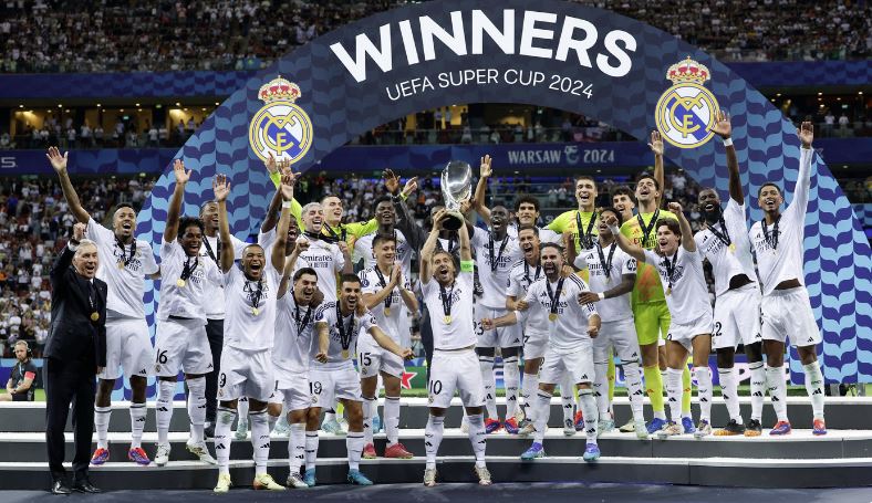 El Real Madrid, vigente campeón de la Champions League UEFA, le ganó 2-0 al Atalanta italiano en el Estadio Nacional de Varsovia y conquistó su sexta Supercopa de Europa. Este título coloca al conjunto blanco por delante del Barcelona y el Milan, con quienes comparten el récord actual de cinco trofeos en este evento.