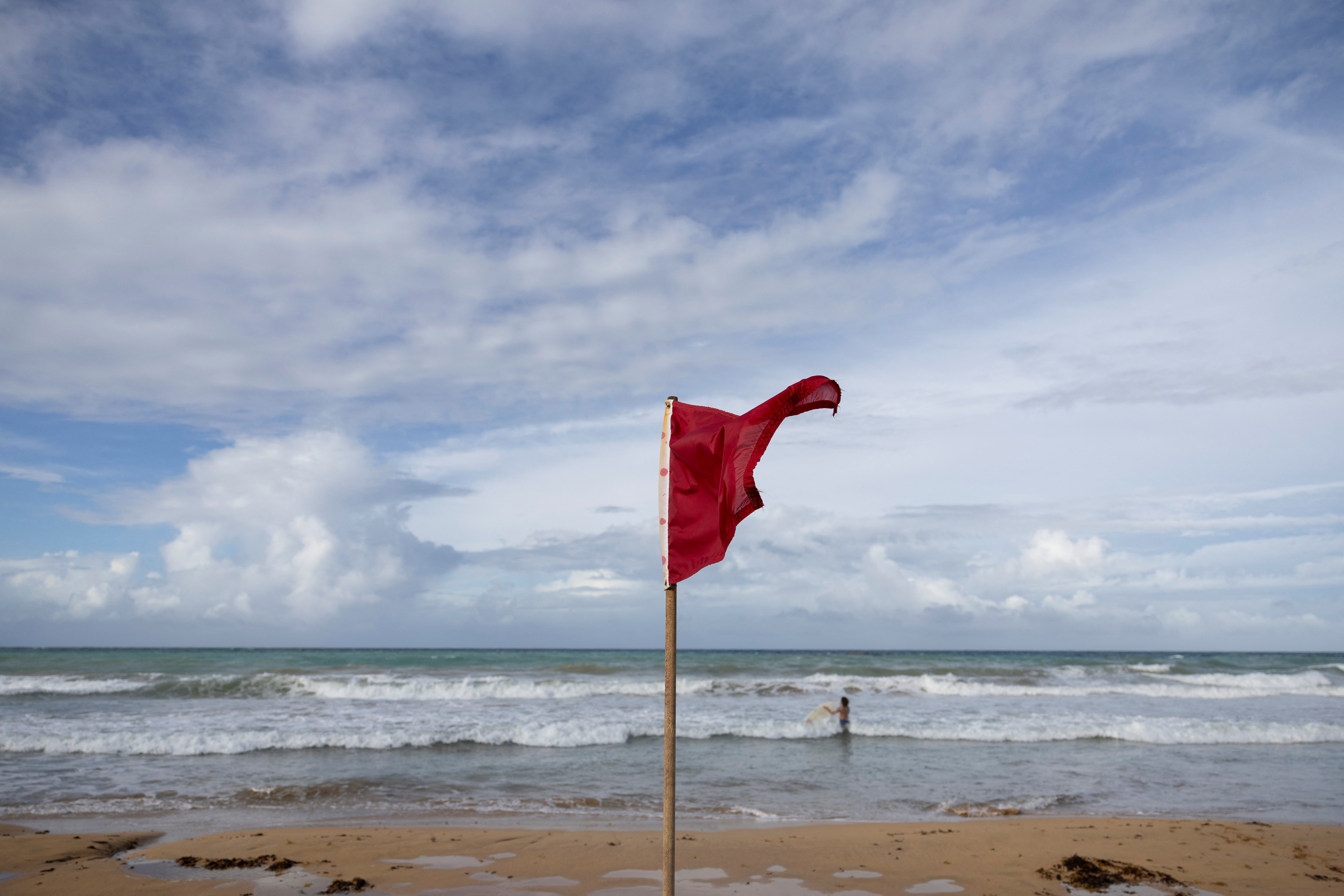 Intensas lluvias azotaban Puerto Rico, y los fuertes vientos dieron al océano un tono turquesa lechoso, mientras las personas se apresuraban a terminar de reforzar sus casas y negocios.