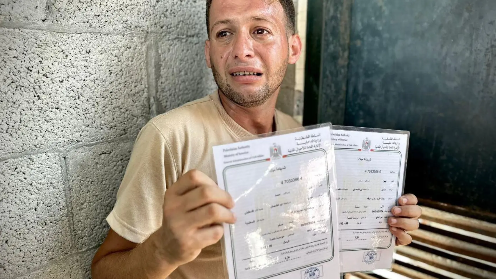 Horas antes, este palestino, padre de dos hijos, había salido de su apartamento en Deir al-Balah para recoger los certificados de nacimiento de sus gemelos de tres días: Aysal y Aser, un niño y una niña. Pero mientras estaba fuera, dijo, recibió una llamada telefónica que le informaba de que un ataque israelí impactó su casa y mató a los dos bebés, junto con su esposa, Jumana.