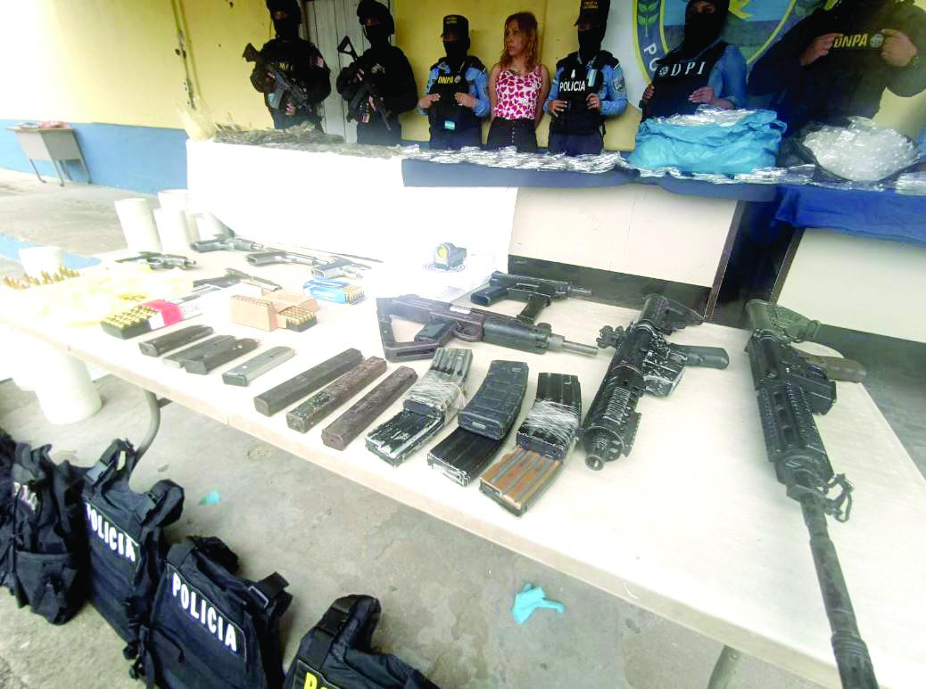 Mediante la requisa realizada a la vivienda de la fémina, los agentes contabilizaron mil 905 puntas de cocaína, mil 917 piedras de crack y mil 19 envoltorios conteniendo hierba seca marihuana, 6 armas de fuego de uso comercial, dos subametralladoras y un fusil AR-15 de uso prohibido y 279 proyectiles de uso comercial y prohibido, así mismo se decomisaron varios chalecos y gorras con la leyenda “Policía Nacional”.