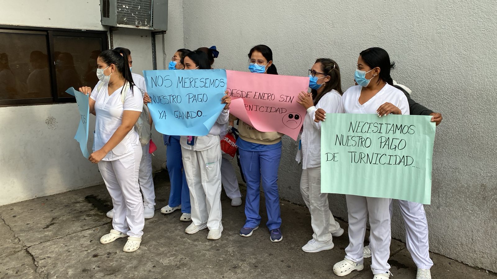Por pago de horas extras protestan enfermeros y enfermeras del Instituto Hondureño de Seguridad Social (IHSS), del barrio La Granja en Comayagüela.