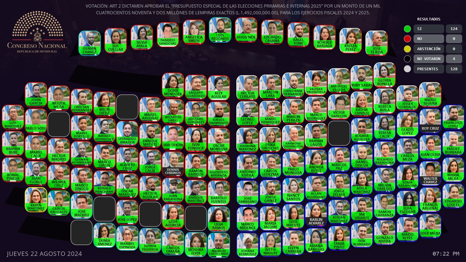 𝑃𝑟𝑒𝑠𝑢𝑝𝑢𝑒𝑠𝑡𝑜 𝐸𝑠𝑝𝑒𝑐𝑖𝑎𝑙 𝑑𝑒 𝑙𝑎𝑠 𝐸𝑙𝑒𝑐𝑐𝑖𝑜𝑛𝑒𝑠 𝑃𝑟𝑖𝑚𝑎𝑟𝑖𝑎𝑠 𝑒 𝐼𝑛𝑡𝑒𝑟𝑛𝑎𝑠 2025 𝐀𝐏𝐑𝐎𝐁𝐀𝐃𝐎 𝐏𝐎𝐑 𝐔𝐍𝐀𝐍𝐈𝐌𝐈𝐃𝐀𝐃: Artículo 1 Aprobar el “Presupuesto Especial de las Elecciones Primarias e Internas 2025”, por un monto de 𝗟.𝟭,𝟰𝟵𝟮,𝟬𝟬𝟬,𝟬𝟬𝟬.𝟬𝟬, para los Ejercicios Fiscales 2024 y 2025.