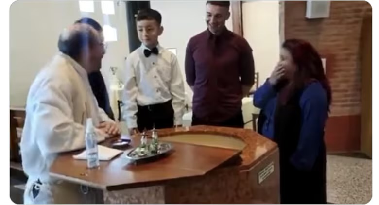 La respuesta del joven no solo provocó risas entre los invitados a la iglesia, sino que también llevó al sacerdote a reconocer el humor del momento. Con un gesto de sonrisa, respondió: “Ahhh…”, dando lugar a un ambiente distendido que permitió que la ceremonia continuara con mayor naturalidad.