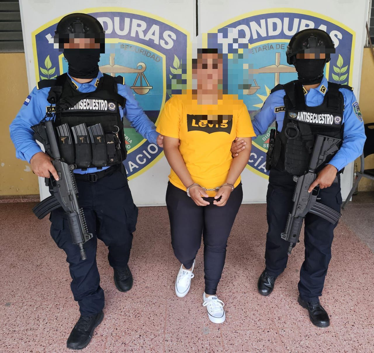 El equipo de especialistas de la Unidad Nacional Antisecuestros (UNAS), con sede en la ciudad de Tegucigalpa, se movilizó hasta la colonia 21 de Noviembre, del municipio de Guaimaca, Francisco Morazán, donde se llevó a cabo la detención de la fémina.