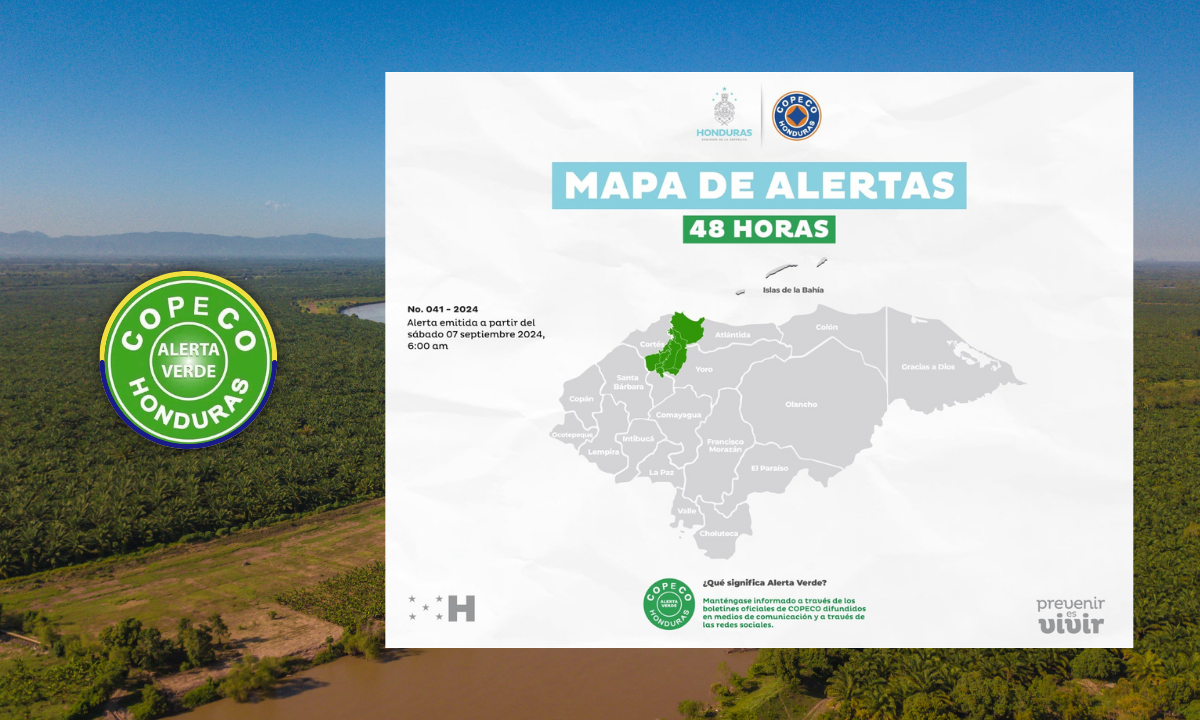 A través de un boletín informativo, la Comisión Permanente de Contingencias (Copeco), han declarado alerta verde en los municipios aledaños al Valle de Sula, esto por crecidas que puedan generarse en la cuenca del río Ulúa.