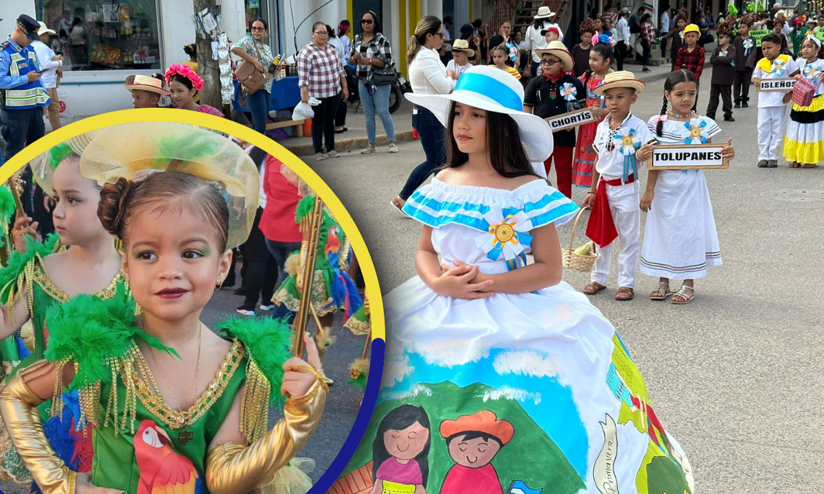 En sectores como la capital, San Pedro Sula, Juticalpa, Choluteca y Copán, cientos de menores de los niveles primarios han mostrado sus dotes y amor por Honduras, desfilando por los accesos principales de sus zonas.