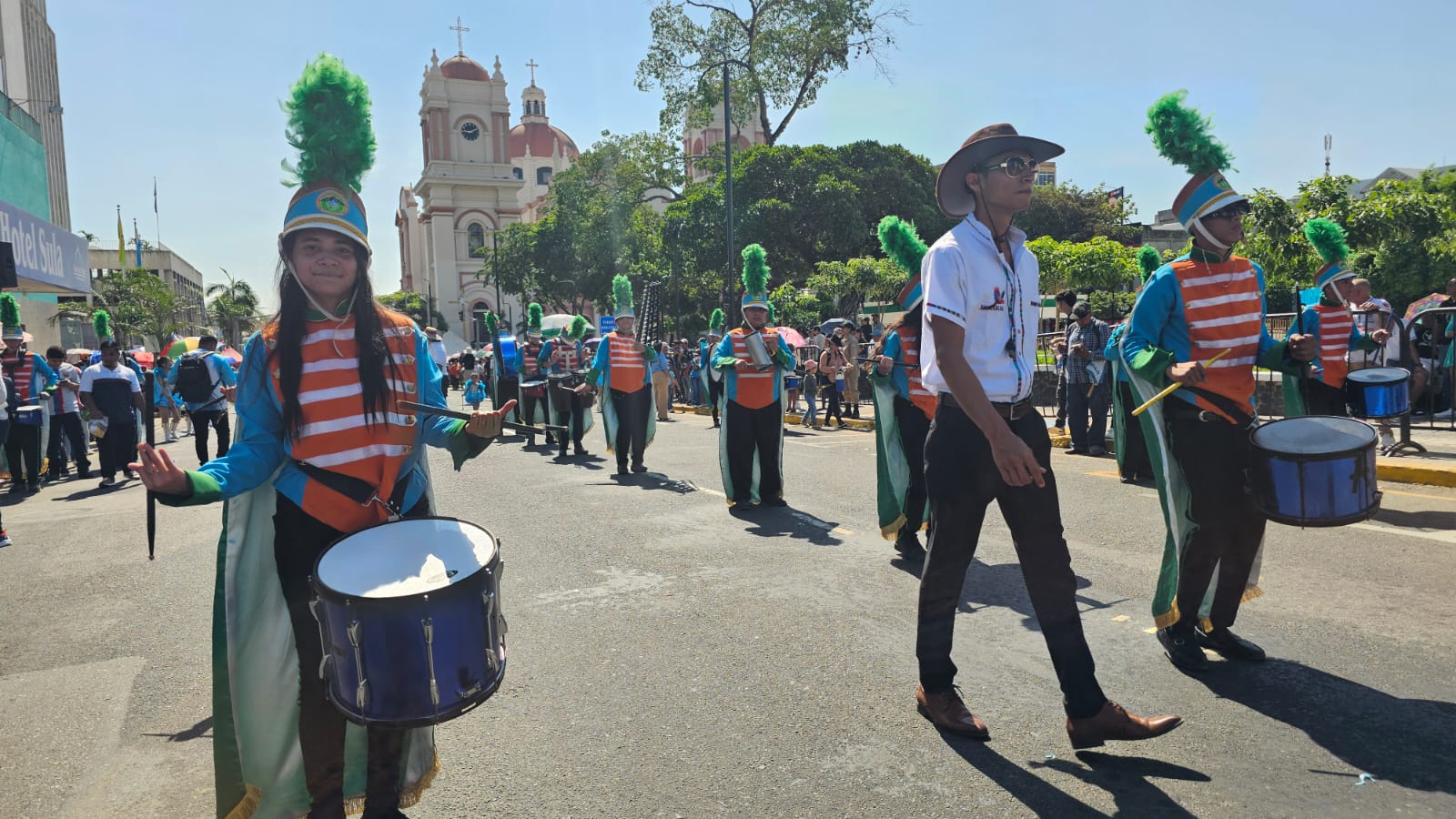 Con su banda de guerra y sus alusivos uniformes, la banda de este centro educativo ha emocionado a quienes asisten a los desfiles en la ciudad industrial, mismos que se llevan a cabo en la primera calle de San Pedro Sula.