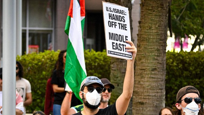 En Washington, más de mil manifestantes protestaron ante la Casa Blanca para exigir a Estados Unidos que ponga fin a la ayuda militar a Israel.