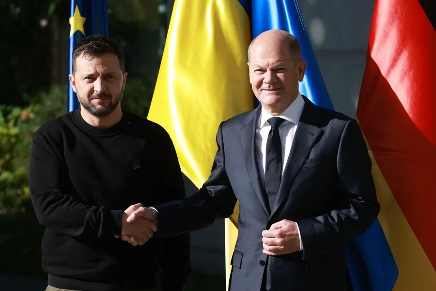 El presidente ucraniano, Volodímir Zelenski, pidió este viernes al canciller alemán, Olaf Scholz, que la ayuda de los aliados se mantenga al mismo nivel para lograr la victoria frente a Rusia y una paz justa para Ucrania.