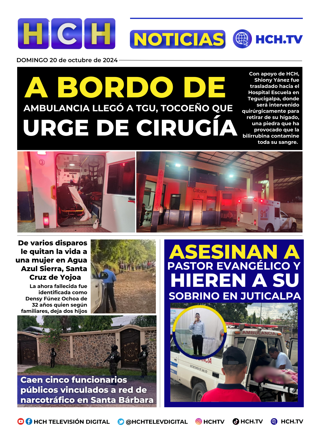 © 2025 - HCH Televisión Digital - Noticias de Honduras y el Mundo. Anillo Periférico, Complejo Empresarial Tegucigalpa, Honduras, C.A. Tel: (504) 2235-3245 / 2235-3246 / 2235-4875 / 2235-4876 LLÁMENOS GRATIS DESDE EE.UU: 3052801682 y 3052801735 © Copyright 2025 - HCH Televisión Digital. Todos nuestros contenidos están protegidos con derechos de autor.