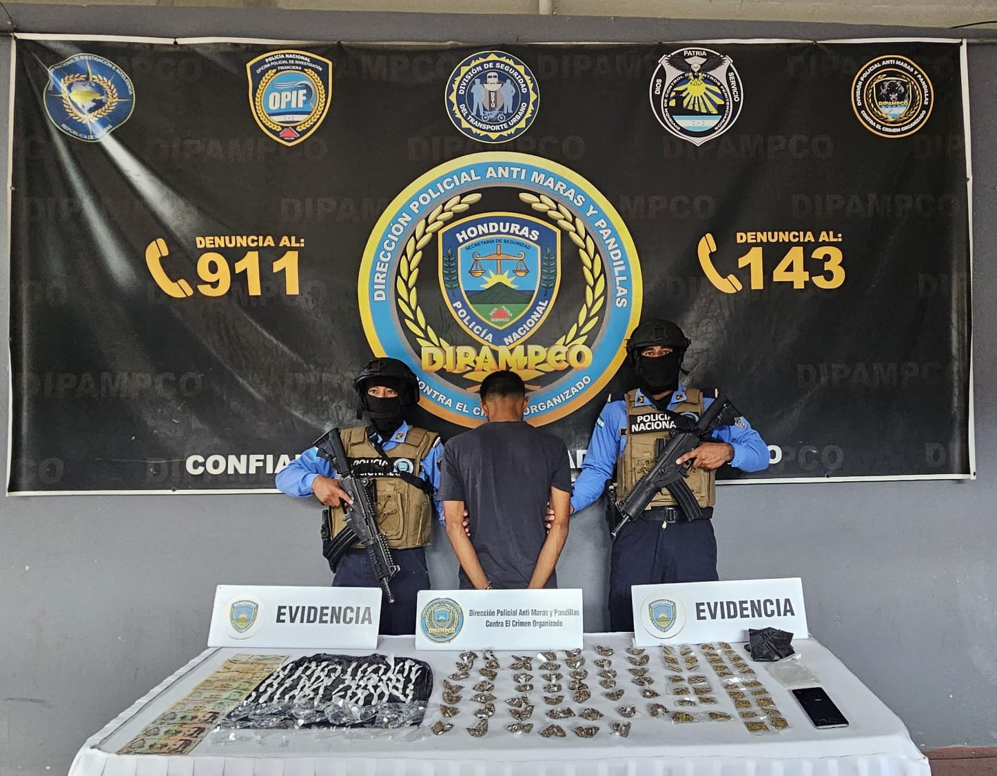 La Dirección Policial Anti Maras y Pandillas Contra el Crimen Organizado (DIPAMPCO), mediante una operación de vigilancia y seguimiento logró la detención de un distribuidor de drogas de la Mara MS-13.