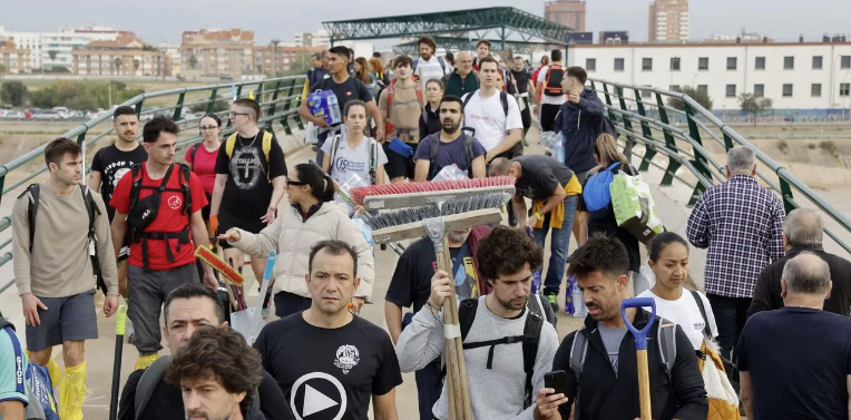 Miles de personas desde primera hora de este 1 de noviembre festivo han salido de sus casas y han llegado por diferentes vías al barrio de San Marcelino de la ciudad de València para, desde ahí, cruzar el puente que llega hasta el barrio de La Torre para distribuirse por los municipios afectados: Sedaví, Alfafar, Paiporta, Picanya, Albal y Catarroja, entre otros.