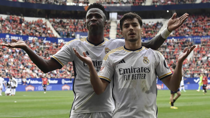 ‘Hat-trick’ de Vini para sellar la mayor goleada del Real Madrid esta temporada. El segundo del brasileño llegó en el minuto 61 en una jugada que se originó con un gran pase en largo con el pie de Andriy Lunin que dejó a Vinicius contra Jesús Areso y Sergio Herrera, a los que superó con maestría para hacer un 3-0 tras el que casi todos los futbolistas se fueron a abrazar a Lunin, como ocurriera en el tanto de Bellingham con Asensio.