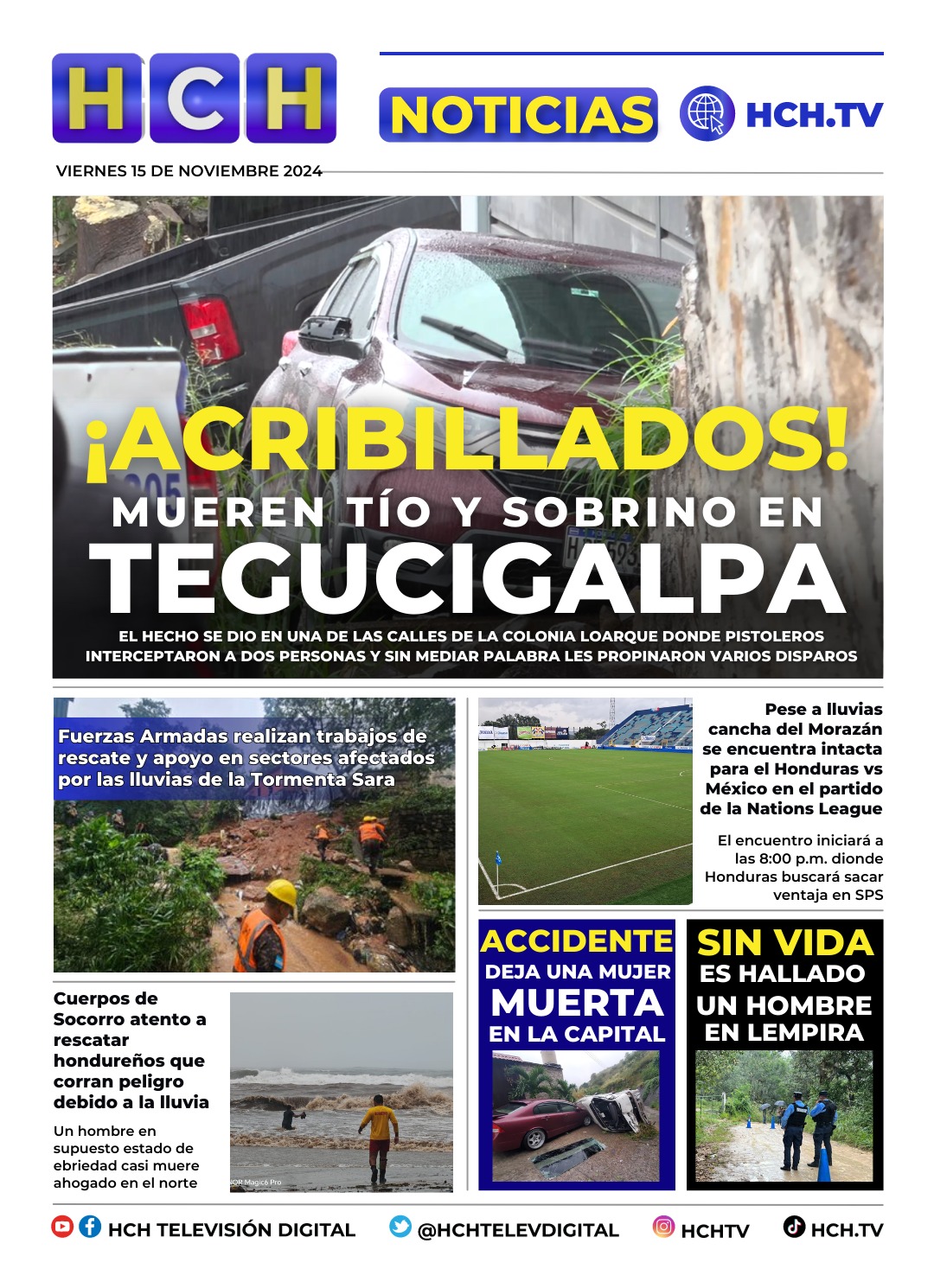 © 2025 - HCH Televisión Digital - Noticias de Honduras y el Mundo. Anillo Periférico, Complejo Empresarial Tegucigalpa, Honduras, C.A. Tel: (504) 2235-3245 / 2235-3246 / 2235-4875 / 2235-4876 LLÁMENOS GRATIS DESDE EE.UU: 3052801682 y 3052801735 © Copyright 2025 - HCH Televisión Digital. Todos nuestros contenidos están protegidos con derechos de autor.