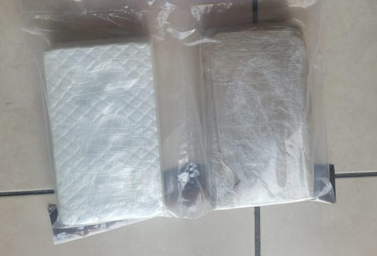 Una vez requeridos, los detectives efectuaron la inspección a un vehículo marca Toyota, modelo Land Cruiser con placa HBB 5181, donde se encontraban los dos paquetes, uno de ellos forrado con plástico transparente y el otro con uno color café claro, mismos que serán enviados para su respectivo análisis a los laboratorios Toxicológicos de Medicina Forense.