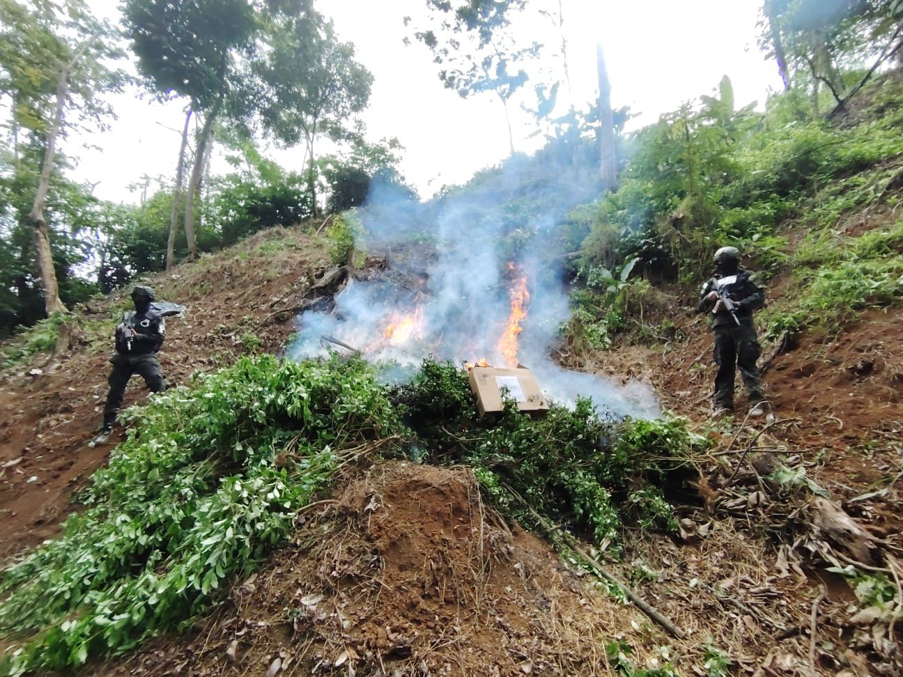 En lo que va del año, las FFAA, ha erradicado más de tres millones y medio de arbustos de hoja de coca, se han asegurado 83 plantaciones de hoja de coca y se han destruido 32 instalaciones artesanales utilizadas para el procesamiento de droga.