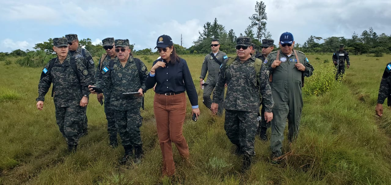 La ministra Moncada junto al jefe del estado mayor conjunto realizan supervisión del predió donde será la construcción del Centro de reclusión de emergencia en Mocoron, Puerto Lempira que iniciará la construcción a finales de este año