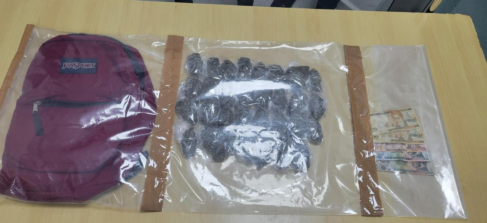 Se le efectuó su formal captura tras seguimiento y vigilancia, en la aldea San Francisco de Olanchito, requiriendolo y realizando un registro personal garantizando su derechos humanos, donde se encontró dentro de una mochila color rojo 31 bolsas conteniendo en su interior hierba seca supuesta Marihuana, con un valor de L.3,100 Lempiras ya puesta a la venta al microtráfico, asimismo se decomisó L.220 Lempiras de diferentes denominaciones.