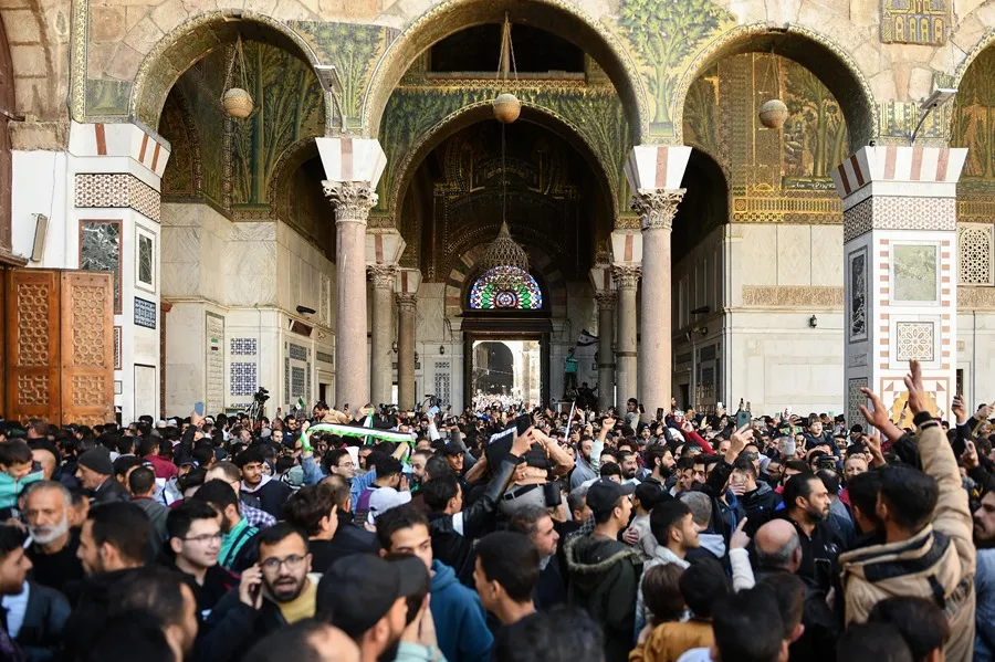 En la capital, varios millares de fieles tomaron parte en el rezo musulmán de los viernes en la histórica mezquita Omeya, una de las más antiguas de Oriente Medio y donde pronunció un sermón el nuevo primer ministro interino sirio, Mohamed al Bashir.