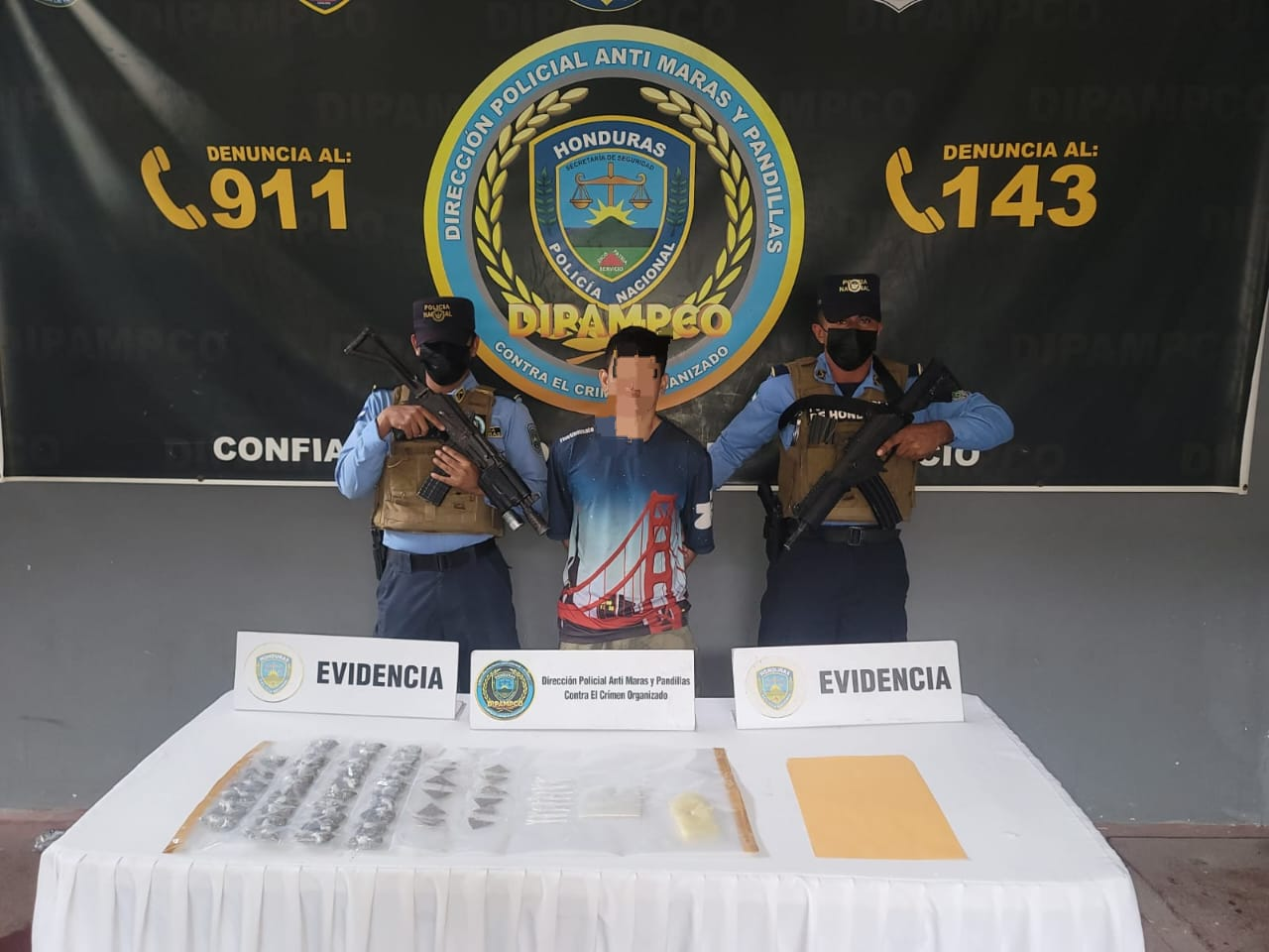 La Dirección Policial Nacional Anti Maras y Pandillas Contra el Crimen Organizado (DIPAMPCO), mediante una saturación en la colonia Central del sector Rivera Hernández de San Pedro Sula, Cortés, agentes de esta institución lograron la detención de un sujeto supuesto miembro de la estructura criminal Pandilla 18.