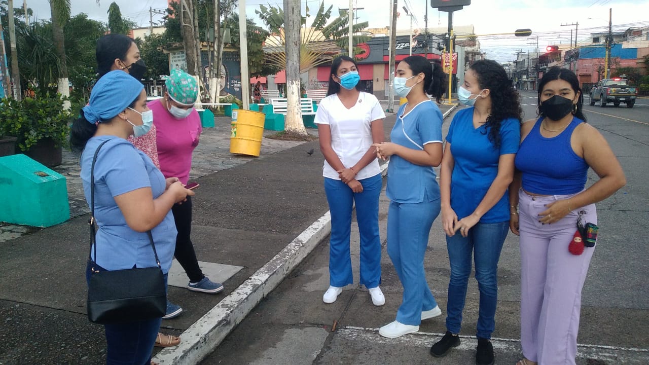 Ex empleados de salud, quienes laboraron en la emergencia del dengue en La Ceiba, protestan este miércoles en exigencia se les sen acreditados cuatro meses de salarios atrasados.